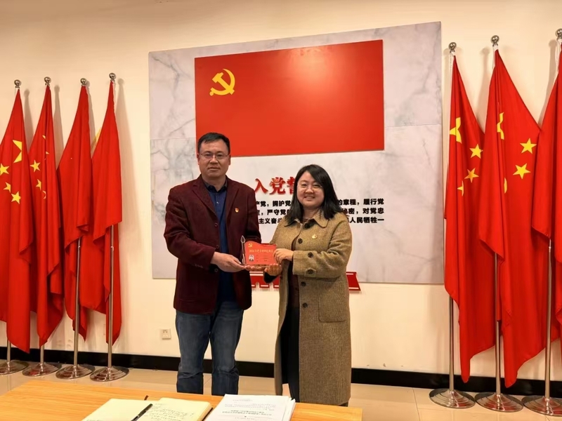 党委书记许尔湘为陈瑾同志颁发党员先锋岗位标牌