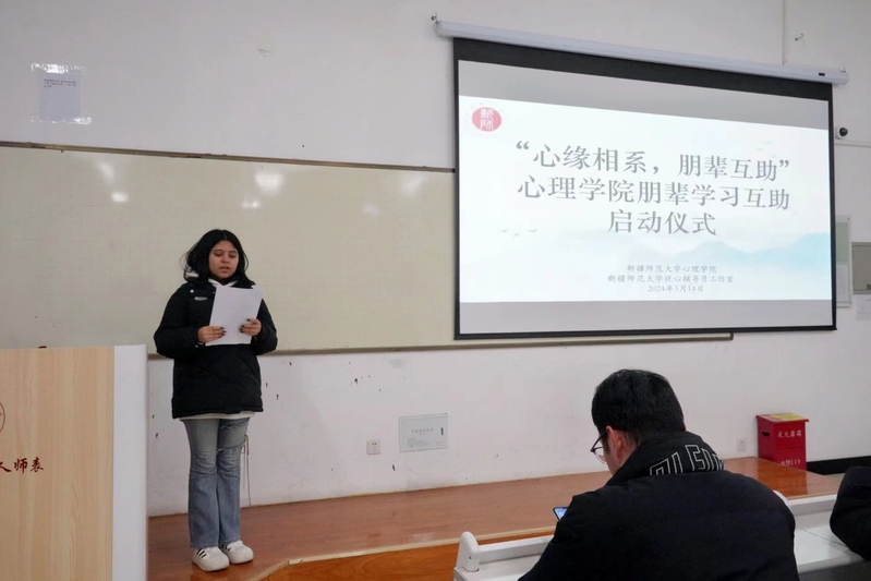 为了推进校风学风建设,加强学生之间学习互助成长的朋辈效应,激发学生学习的积极性和主动性,营造“比、学、赶、帮、超”的学习氛围。于2024年3月14日,太阳成集团tyc7111cc在3号教学楼B区130教室举办朋辈互助启动仪式,太阳成集团tyc7111cc学生工作副主任张政及全体帮扶志愿者和被帮扶对象参加启动仪式。