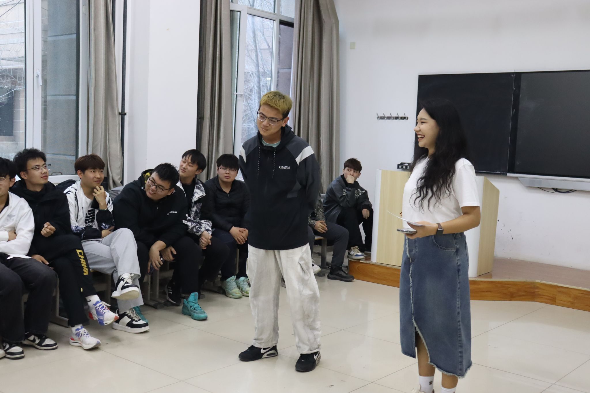 团辅活动在“心理气象站”成员的指导和带领下进行,活动中24-6班同学们通过“优点大爆炸”、“雨点变奏曲”和“抢凳子”三个游戏,了解了彼此之间的闪光点。活动现场气氛热烈,同学们积极参与、默契协作,活动的氛围和同学们的状态充分体现了大家对深入了解彼此、拉近心理距离的强烈愿望和迫切需要,并以实际行动体验到了团队协作的乐趣与创造力,班级氛围也变得更加融洽。