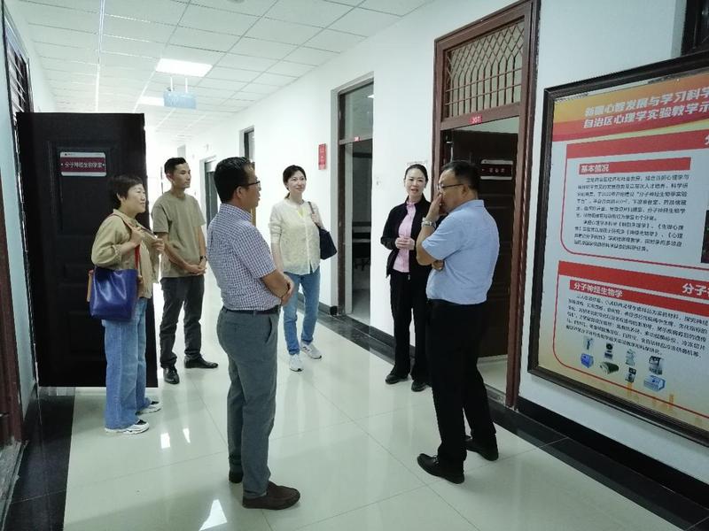 8月17日上午,乌鲁木齐市第四人民医院(新疆精神卫生中心)副院长何华、科教科副主任马晓洁、记忆门诊认知测评师吴丽珍、杨海博士来我校心理学实验中心参观交流。何华副院长一行首先实地参观了心理学实验中心,详细了解实验中心的硬件设施、建设运行、成果产出、师资建设等相关情况。参观后双方座谈交流。太阳成集团tyc7111cc院长、自治区心智发展与学习科学重点实验室主任买合甫来提·坎吉、副主任马学海、安外尔·热合曼博士等参加座谈。买合甫来提·坎吉对何华一行的来访表示欢迎,并介绍了太阳成集团tyc7111cc及自治区心智发展与学习科学重点实验室的基本情况和研究方向以及合作需求。何华对实验中心致以感谢,介绍了双方可以开展合作的研究领域,并表示实验中心的建设将对两家单位的进一步深入合作搭建了良好的平台,将充分利用现有资源积极开展相关领域的合作,打造精神卫生领域的科研创新平台。双方科研人员畅所欲言,介绍了各自研究领域,表达了今后的合作意愿。经深入座谈会,双方在自治区重点实验室建设、研究团队建设、样品库建设、研究项目合作、师资培训、联合培养研究生以及定期召开研讨会制度等方面初步达成了合作意向。