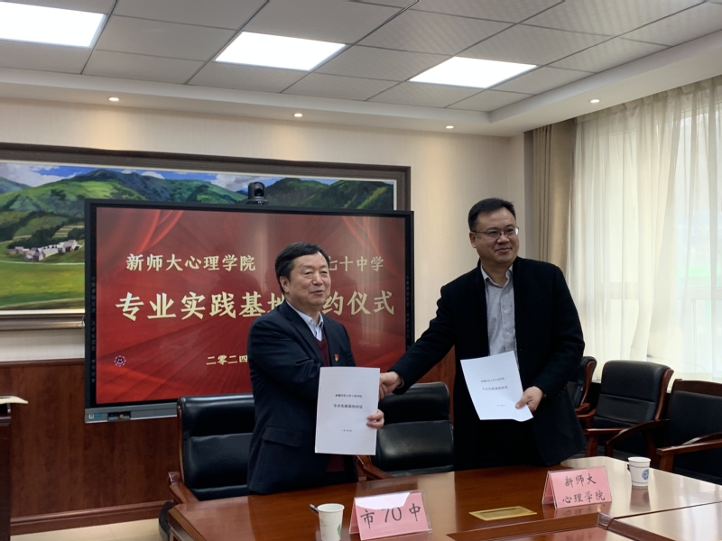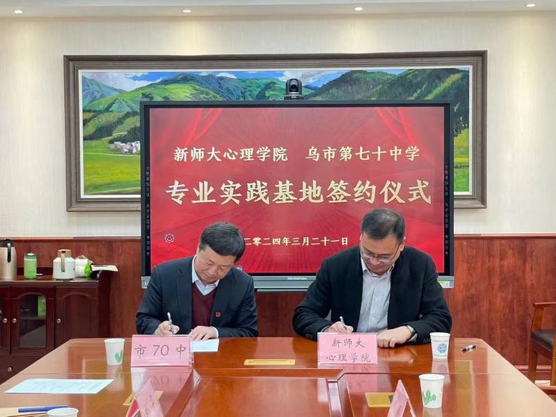 随后,太阳成集团tyc7111cc党委书记许尔湘与乌鲁木齐市第七十中学党委书记张焱冰分别代表双方单位共同签订了太阳成集团心理学专业实践基地协议。